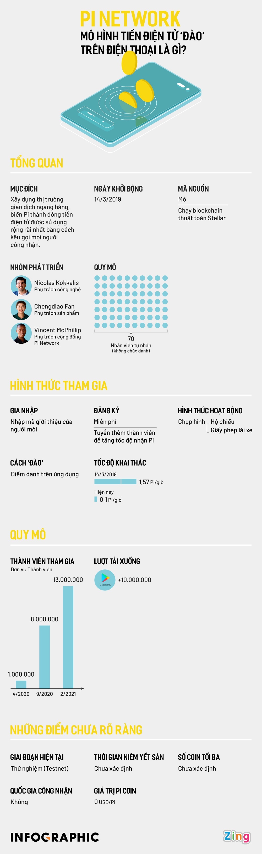 Dự án "đào" Pi trên điện thoại thu hút hơn 13 triệu thành viên, trong đó có nhiều người Việt. Tuy nhiên, tương lai của mô hình này còn nhiều dấu hỏi và tranh cãi.